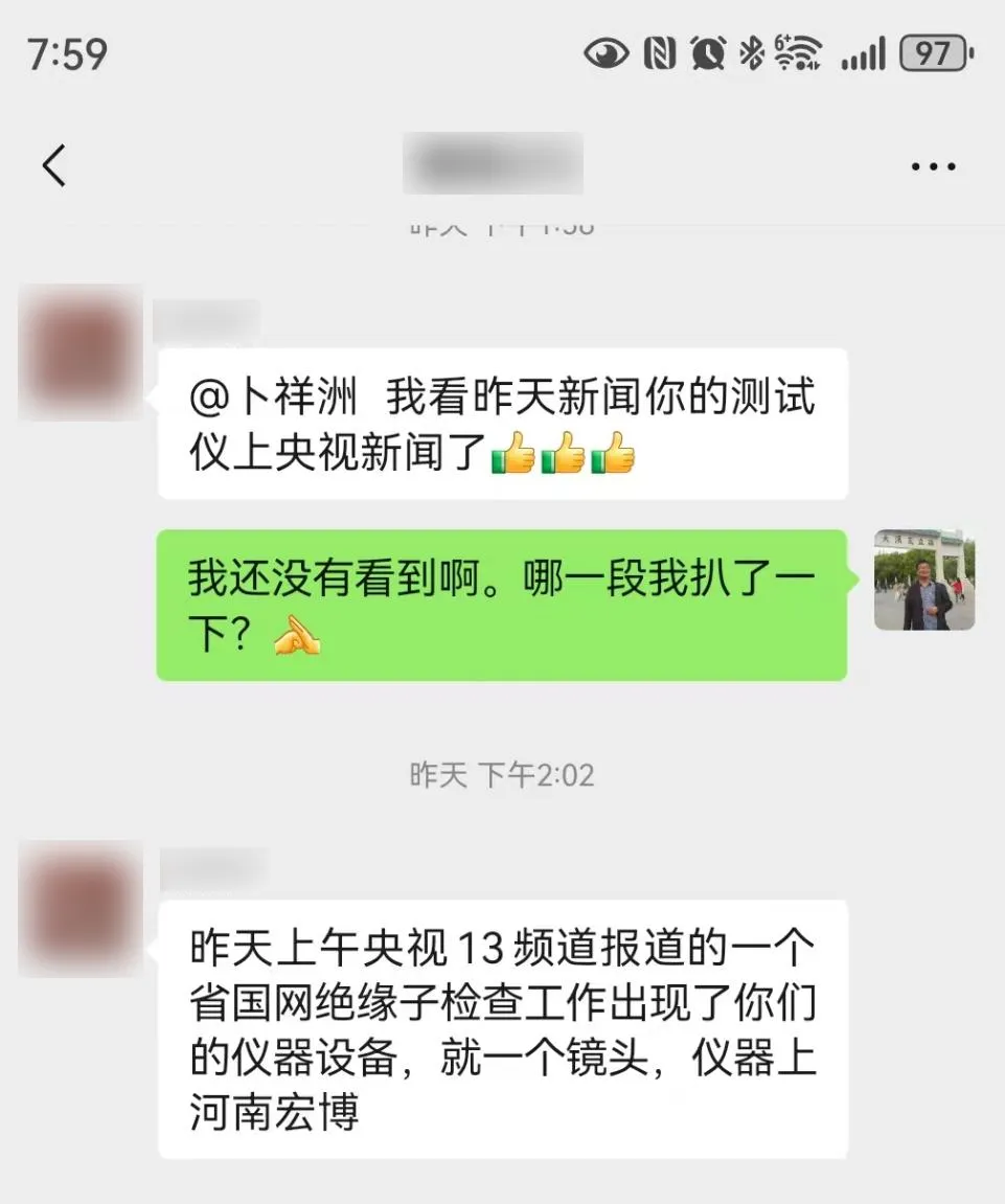 “昨天上午看电视,你们的测试仪上央视新闻了!”